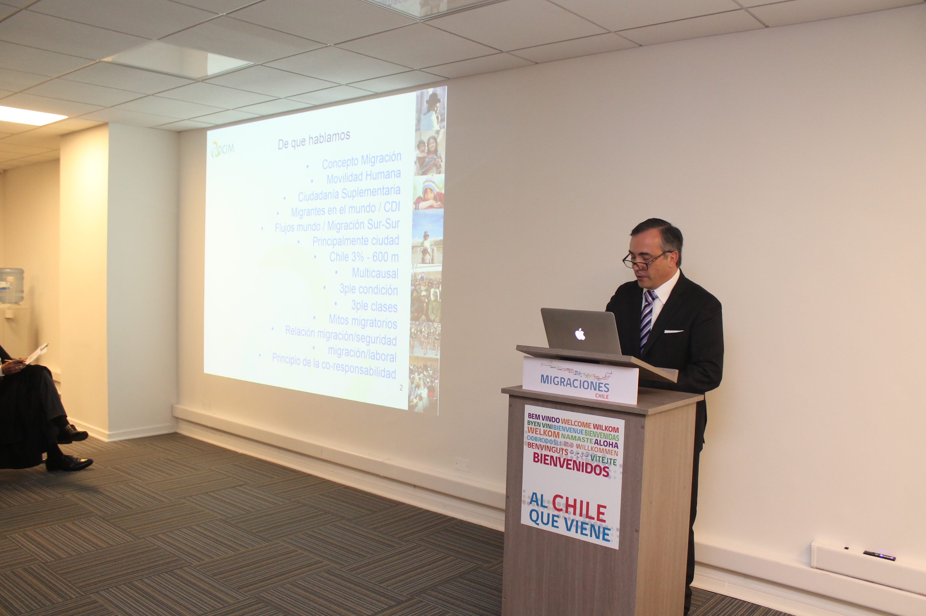 El Jefe del Departamento de Extranjería y Migraciones del Ministerio del Interior y Seguridad Pública (DEM), Rodrigo Sandoval reseñó las principales características y oportunidades que presenta la movilidad humana para el País y las actividades desarrolladas en este campo.